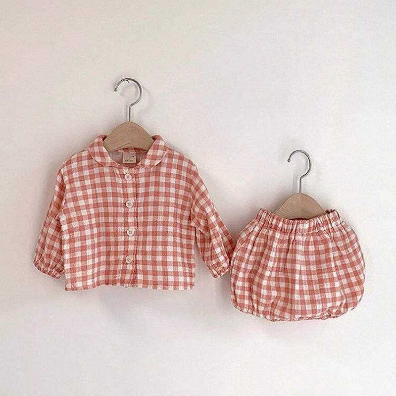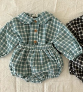 Children’s Clothes Baby Romper Western Style Plaid Long-sleeved Suit