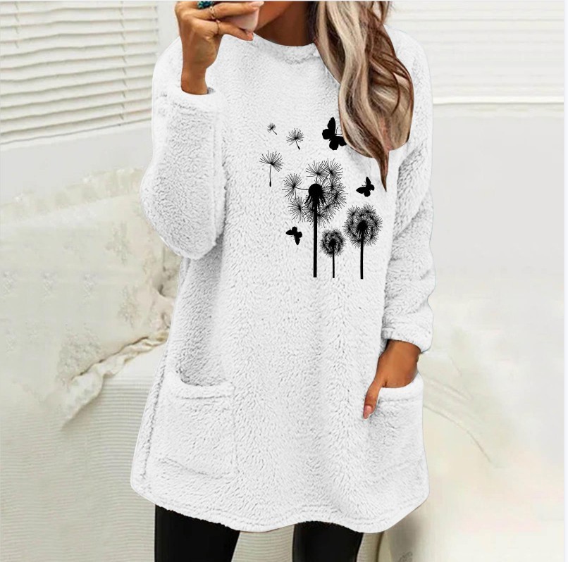 European And American Women’s Round Neck Pullover Long Sleeve Pocket Embossed Double-sided Velvet Sweatshirt