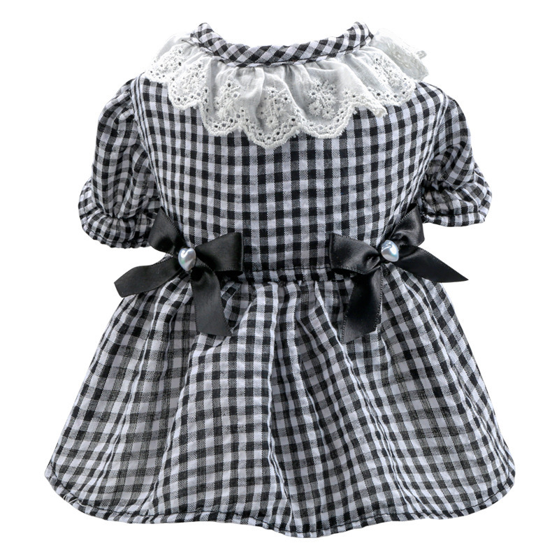 Pet Ring Dog Clothing Cat Clothes Bow Lace Collar Edge Black And White Plaid Princess Love Pearl Skirt