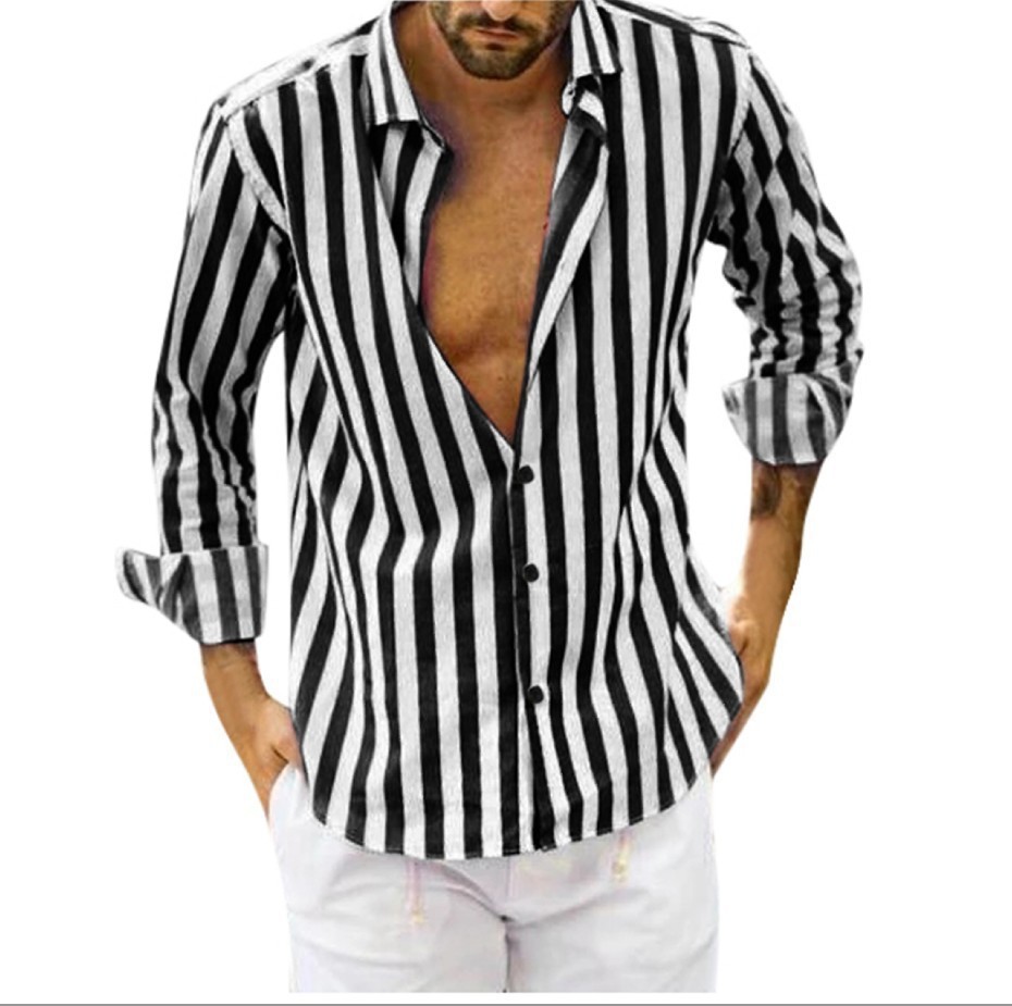 Polo Collar Stripes Shirt Loose