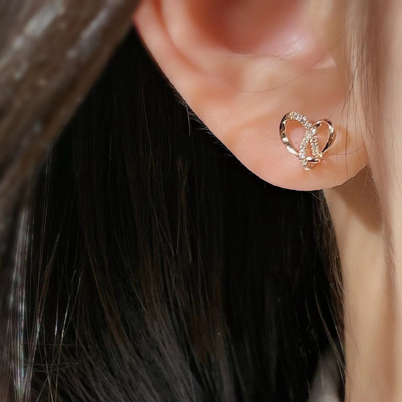 Simple Winding Triangle Micro Inlaid Romantic Heart-shaped Earrings