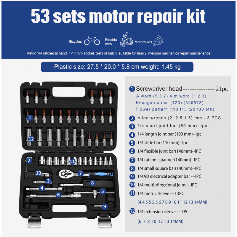 | Color | 46PCS SET, 46PCS SET Nickel plating, 46SETS MOTOR REPAIR KIT, 53PCS SET, Black box 10PCS SET |