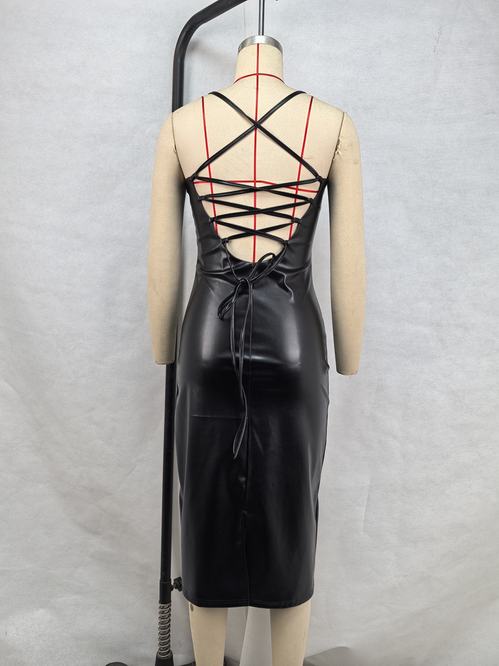 Strap Split Dress Leather Sexy Open-back Design
