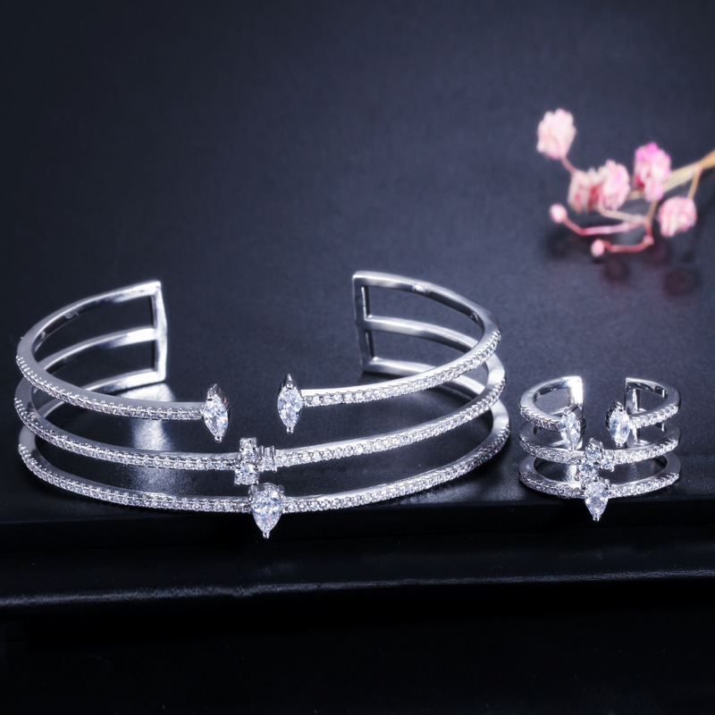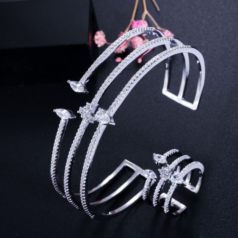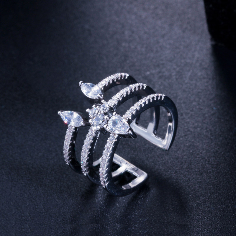 Three Rows Of Micro-inlaid Zircon Bangle Ring Green Copper